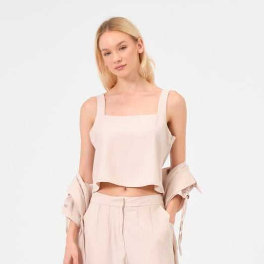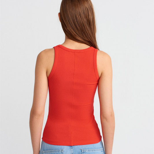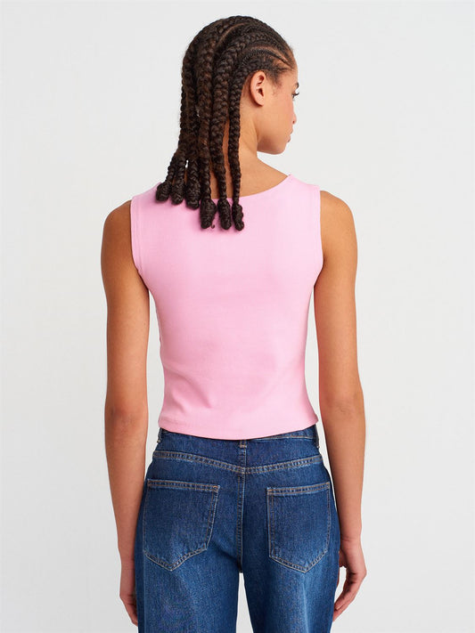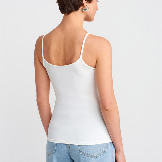 Kayık Yaka Düğmeli Kolsuz Top Beyaz